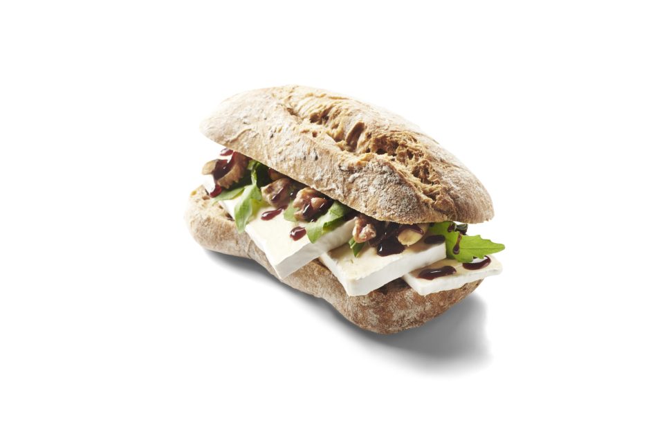 Broodje brie met biologische dadelstroop, gemengde noten & rucola