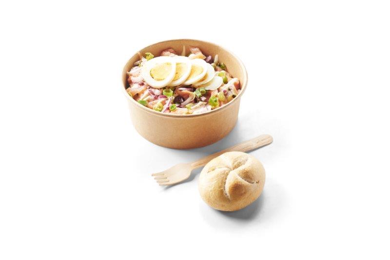 Salade Gerookte zalm met limoenmayonaise/bosui/rode ui/ei/mini broodje