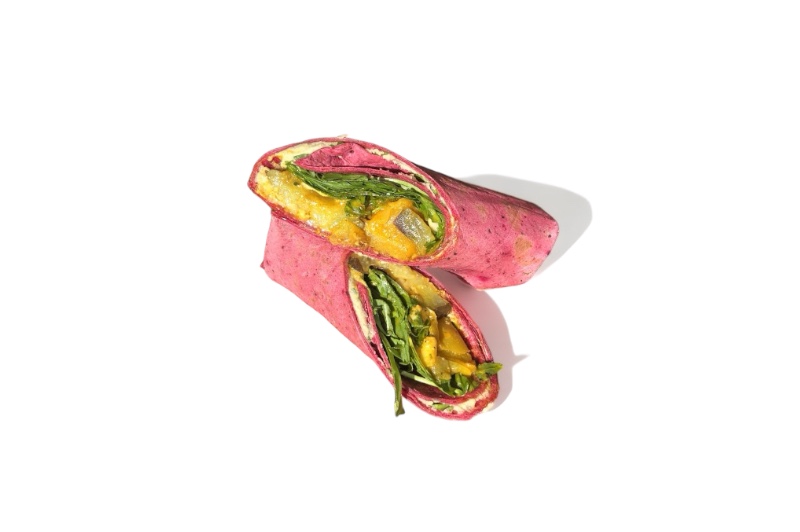 Vegan Rode bietenwrap met humus, gegrilde groenten & pijnboompitten